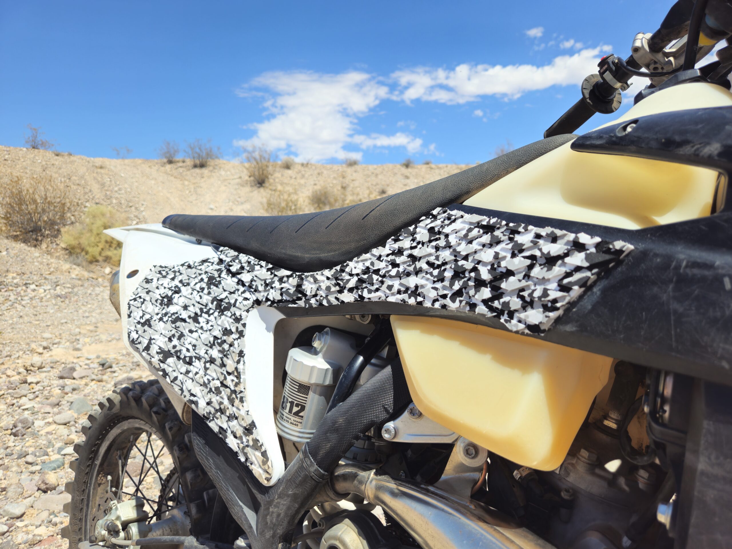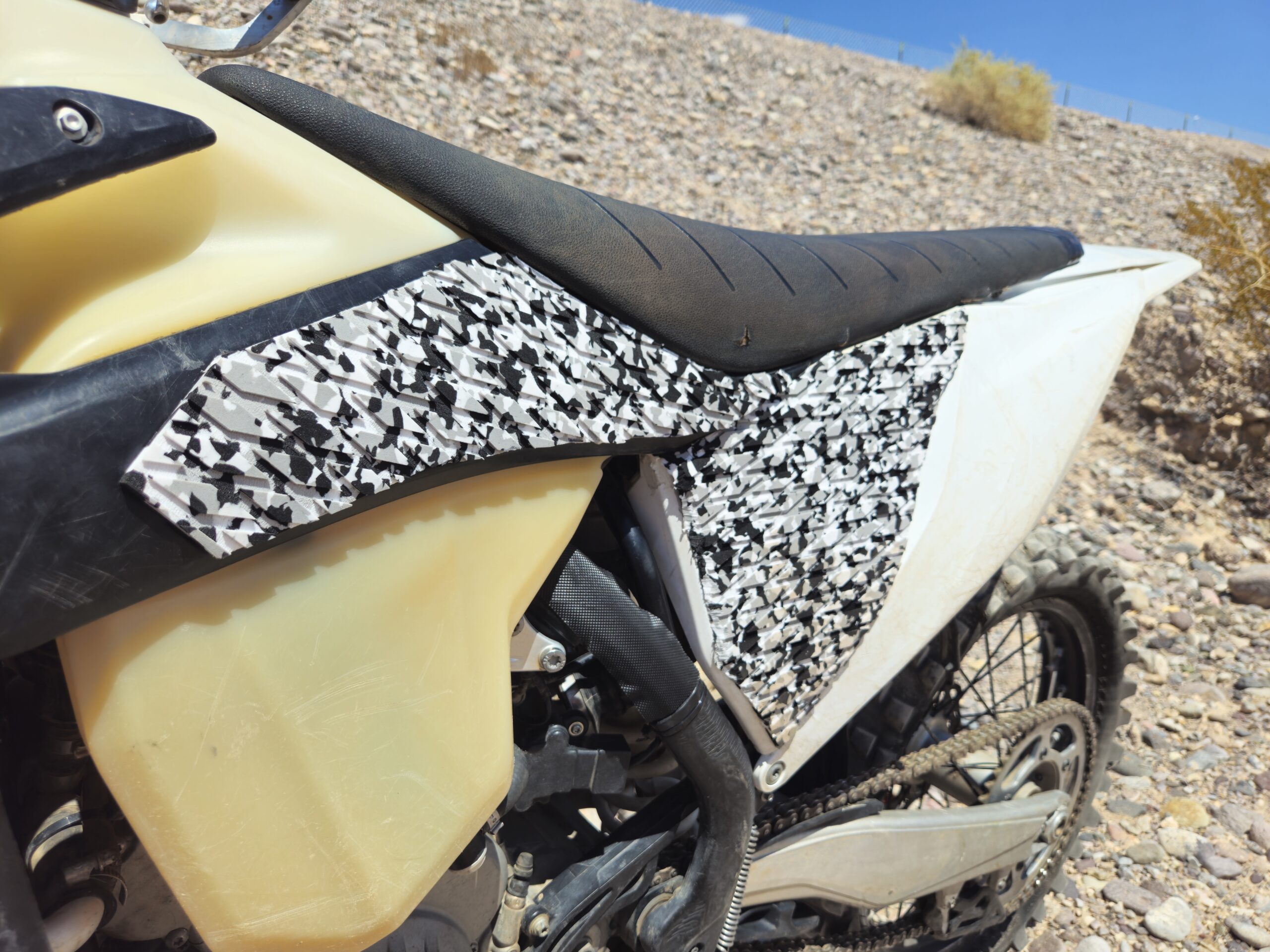 We’ve cut out our EVA Foam grips to fit perfectly on your bike. A strong adhesive keeps it on during tough rides. The foam allows you to sink your legs into it for a solid grip and comfort.